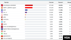 „СДСМ и коалицијата освоиле 327.329 гласа, ВМРО-ДПМНЕ и коалицијата освоиле 315.344 гласа, , ДУИ - 104.699 гласови, Алијанса за Албанците и Алтернатива имаат 81.827 гласа, Левица доби 37.426 гласа и ДПА 13.930 гласа“, соопшти ОливерДерковски претседател на ДИК.