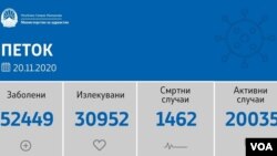 Во последното деноноќие се регистрирани 1.237 новозаболени и 39 починати е билансот од епидемијата на Ковид - 19 во последното деноноќие во Северна Македонија. Направени се 3.200 тестирања од кои 38,6 отсто се позитивни. Од почетокот на епидемијата битката со вирусот ја загубија 1.462 лица а во моментов се активни 20.035 случаи