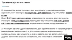 Со новиот концепт се предвидува задолжителниот престој за учениците од прво до петто одделение во училишта кои работат двосменски да биде 5 саат на ден, од кои 3 до три и полсаати ќе бидат наменети за наставни часови. Додека, учениците од шесто до деветто одделение ќе престојуваат во училиште по 6 саати дневно, од кои 4 до четири и пол саати се посветени на наставните часови.