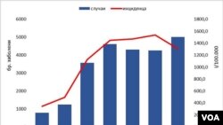 „Најзастапена е возрасната група на лица на возраст над 60 со 540 случаи или 26,5%. Голем број на заболени се регистрира и кај лицата во возрасните групи од 40-49 години - 368 или 18,1%, од 50 до 59 години - 365 лица или 17,9% и во групата од30 до 39 години каде има 374 случаи или18,4%“ стои во анализата на ИЈЗ.