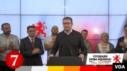 Околу 23 часот пред пултот застана претседателот на партијата Христијан Мицкоски, кој покрај победата најави мнозиство во актуелниот парламент што ќе биде прв чекор кон предвермените парламентарни избори.