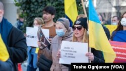 Со транспаренти, пеење на украинската химна, но и низ солзи стотина украински граѓани денеска одржаа протестен марш низ Скопје и побараа да запре руската агресија врз нивната земја.