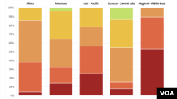 Конфронтацијата меѓу „блоковите“ расте, како што е меѓу Индија (150-то место) и Пакистан (157-мо место). Недостигот на слобода на печатот на Блискиот Исток продолжува да влијае на конфликтот меѓу Израел (86-то место), Палестина (170-то место) и арапските држави.