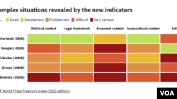 Со цел да ја рефлектираат сложеноста на слободата на печатот, сега се користат пет нови индикатори за составување на Индексот: политички контекст, правна рамка, економски контекст, социокултурен контекст и безбедност.