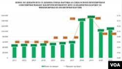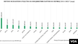 Истражувањето на Меѓународниот републикански институт (ИРИ) покажа дека за 10 години, во периодот од 2011 до 2021 година, од државниот Буџет се исплатени 26,5 милиони евра кон политичките партии во државата. Сумите кои се исплаќаат се различни од година во година и тоа се должи на измените на процентот од Буџетот кои се одвојуваат за партиите како и висината на самиот Буџет.