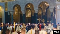 Храмот „Свети Сава“ беше претeсен за илјадниците верници кои се појавија на утринската литургија која се водеше и на македонски и на српски јазик, и од македонските и од српските владици.