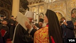 ИСТАНБУЛ - По 55 години чекање, од денеска Македонската црква и официјално е во единство со сите православни цркви во светот. Утрово Вселенскиот патријарх г.г. Вартоломеј и поглаварот на МПЦ-ОА, г.г. Стефан одржаа заедничка литургија во Соборниот храм на Вселенската Патријаршија „Св. Георгиј Победоносец“ во Истанбул (Фанар) откако во четвртокот вселенскиот Патријарх Вартоломеј му го предаде Патријаршискиот и синодален акт на Вселенската патријаршија за примање на Охридската архиепископија (ОА) во богослужбено и канонско единство.