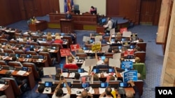 По говорот Ковачевски ја напушти собраниската сала, на што реагираа опозициските пратеници кои сканидраа дека е предавник.