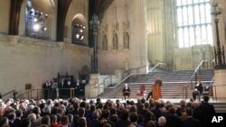 Стотици пратеници ја преполнија Вестминстерска сала, најстариот дел од Парламентот за говорот на Зеленски.