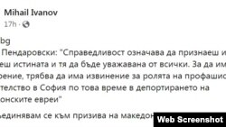 „Тој е апсолутно во право. Зошто не ги слушам демократските политички партии за срамната позиција во која генералот Радев и неговиот круг ја ставија Бугарија?“, напиша Иванов на социјалната мрежа „Фејсбук“.