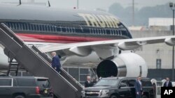 Трамп го напушти своето голф-летувалиште во Бедминстер, Њу Џерси, во понеделникот наутро и се качи на својот личен авион на меѓународниот аеродром Њуарк за летот за јужната држава Флорида. Тој престојува во неговото одморалиште Дорал преку ноќ пред да им се предаде на федералните власти во вторник попладне во американскиот суд во Мајами.