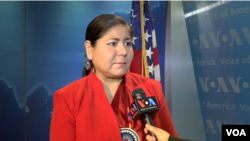 Таа во Гласот на Америка во Вашингтон говореше на настан организиран од Американската агенција за глобални медиуми.