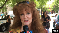 Таа пред камерата на Гласот на Америка на македонски ја интонираше мелодијата на песната „Македонско девојче“.