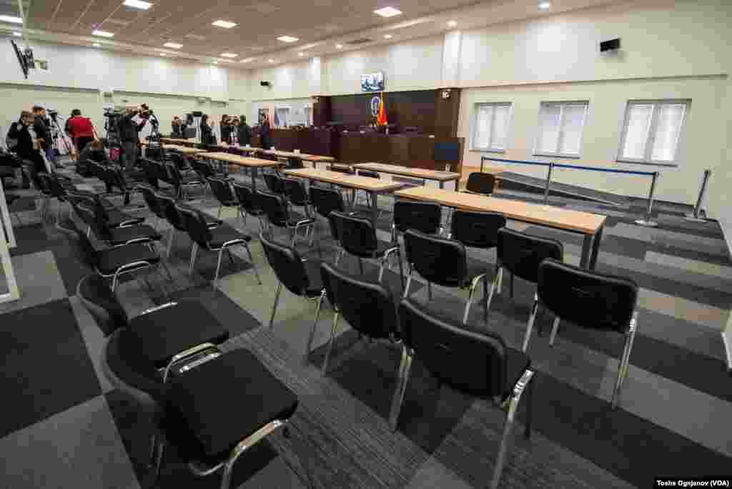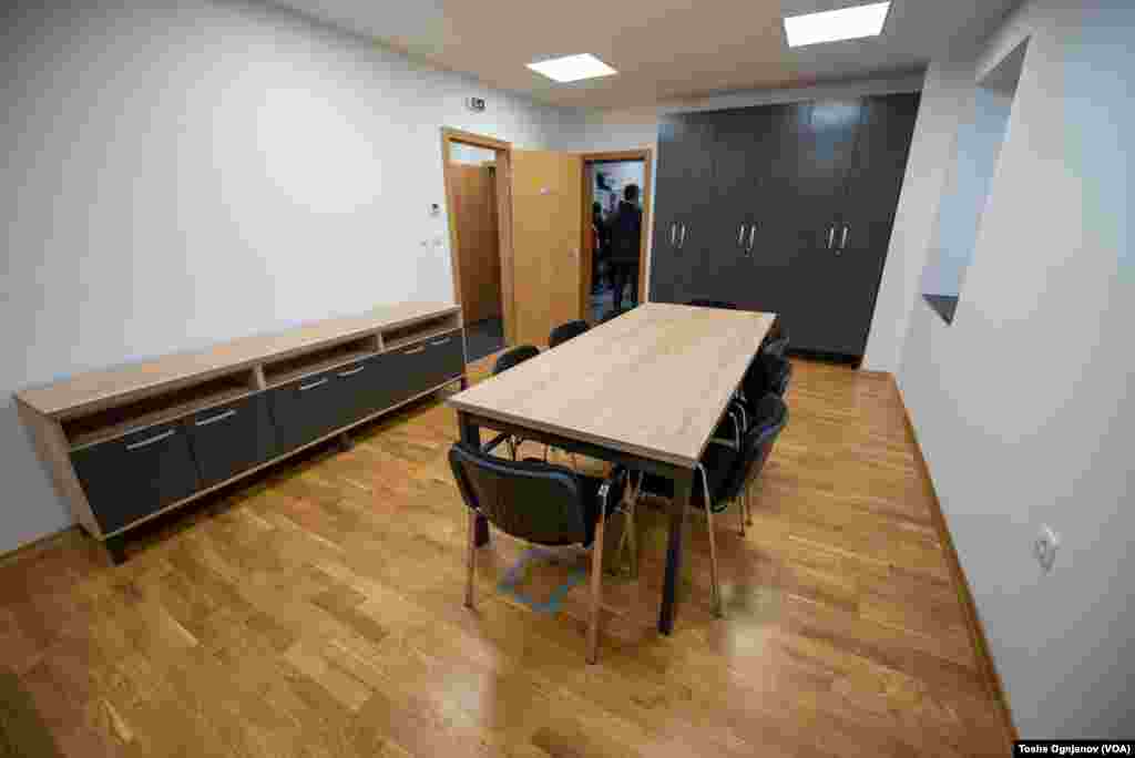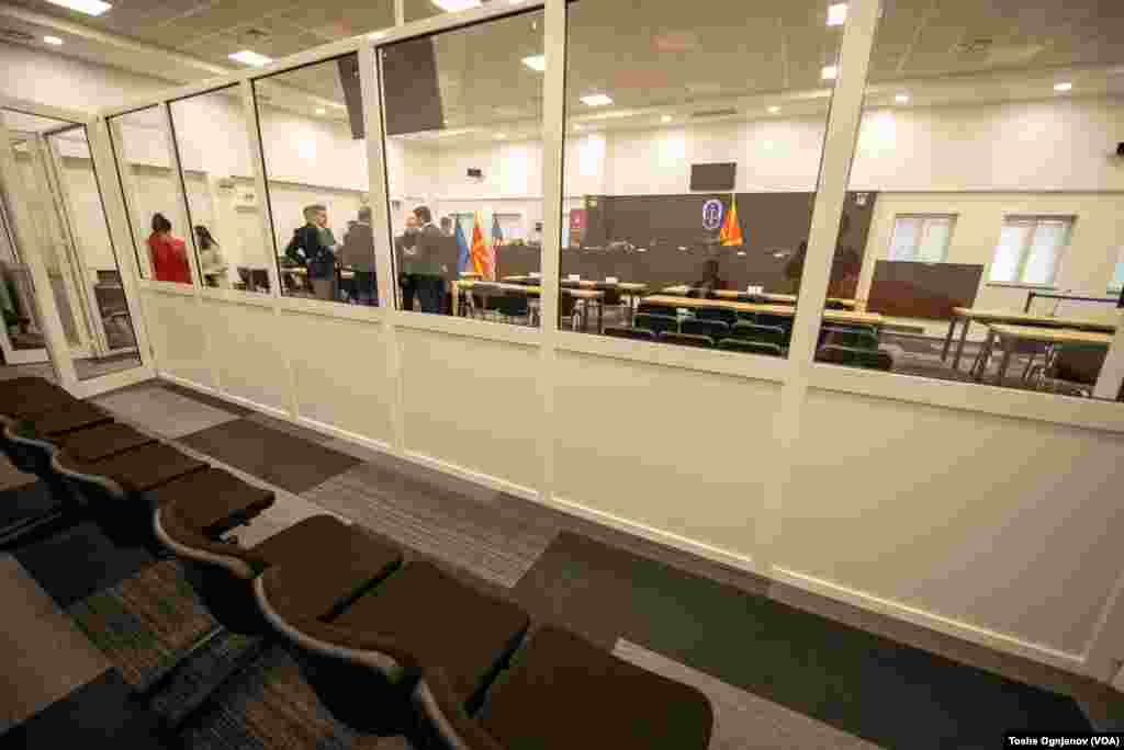 Системи за заштита на идентитетот на сведоците, безбедносни простории, посебни влезови за службени лица, за обвинети, простор за медиуми, камери, монитори, сервери, ја сочинуваат судницата. Има судска сала од 290м2 и капацитет до 120 лица.