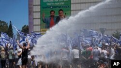 Полицијата употреби водени топови за да ги расчисти демонстрантите кои ја блокираа главната артерија што води кон Ерусалим и уапси неколку други кои го попречија автопатот до централниот град Модиин.