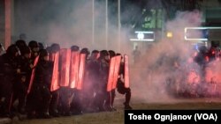 Сепак, во текот на обраќањето на Петрушевска, од толпата се издвои група од 30-40 млади лица кои почнаа да фрлаат петарди кон малиот полициски кордон пред Собранието. Набргу се нафрлија на оградата која за кратко време беше урната, по што следеше канонада од камења, откорнати плочки од тротоарите, но и запаливи предмети кон зградата на Собранието и делумно кон полицискиот кордон.