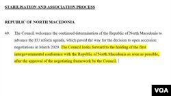 „Советот со нетрпение го очекува одржувањето на првата меѓувладина конференција со Република Северна Македонија што е можно поскоро, по одобрувањето на преговарачката рамка од страна на Советот“.