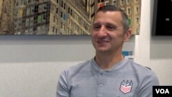 “Возбудливо. Многу сум возбуден и среќен што имам можност да бидам тренер на оваа репрезентација”, објаснува пред камерата на Гласот на Америка.