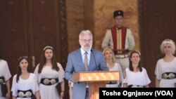 Неговото обраќање беше пред Собранието, во близина на споменикот на Никола Карев, каде се одржа главната свеченост во Скопје по повод чествувањето на 118 години од Илинденското востание и 77 години од Првото заседание на АСНОМ.