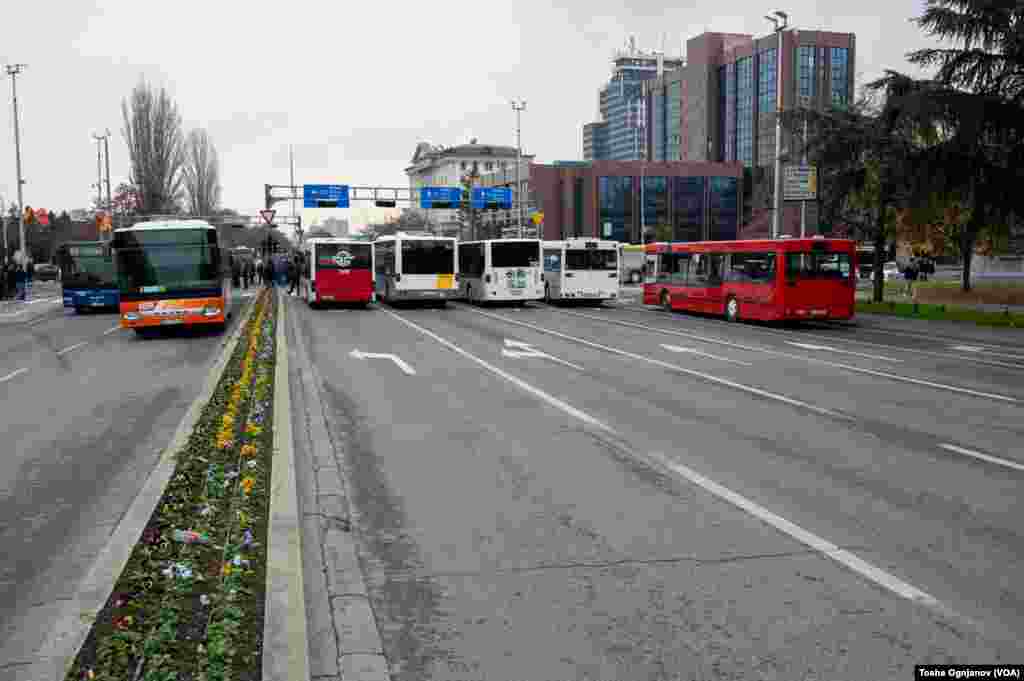 Со триесетина автобуси, приватните превозници излегоа на протест и го блокираа централното подрачје на Скопје. Тврдат дека ЈСП и Град Скопје им должат околу 1,5 милиони евра за извршен автобуски превоз во изминатите три месеци