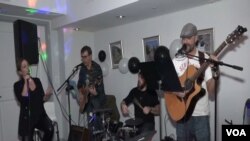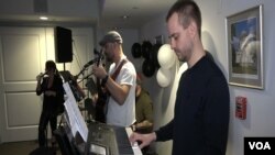 “Најчесто настапуваме во реонот на Вашингтон, а неколку пати годишно одиме и во Њујорк и околината, објаснува Александар Димитријевиќ”, кој свири клавијатури.