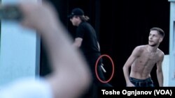 Целосно во црна облека, со капче и очила за сонце е второто вооружено лице што стрелаше за време на тензиите што се случија кај плоштадот „Скендербег“ во Скопје.